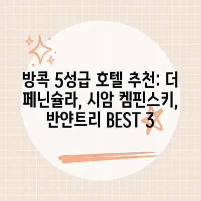A: 방콕에서 추천하는 5성급 호텔은 더페닌슐라 방콕, 시암켐핀스키, 반얀트리 방콕입니다. 각 호텔은 고유한 매력을 가지고 있어 여행자의 요구에 맞추어 선택할 수 있습니다.