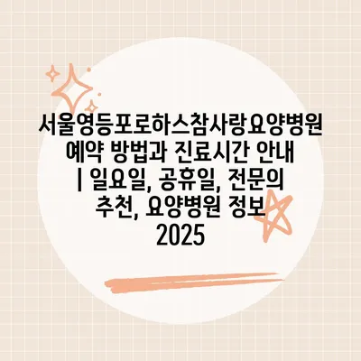 서울영등포로하스참사랑요양병원 예약 방법과 진료시간 공지 | 일요일, 공휴일, 전연락 추천, 요양병원 정보 2025 에 대해 자주 묻는 질문 TOP 5