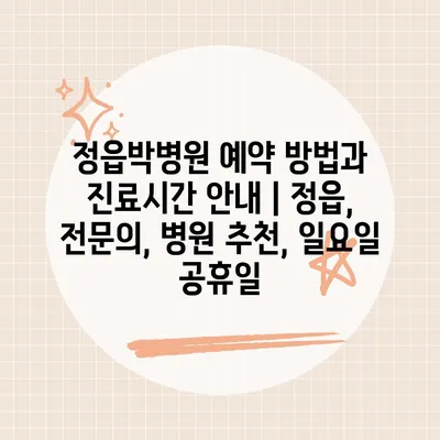 ✅ 정읍박병원의 진료시간과 예약 방법을 지금 바로 알아보세요.