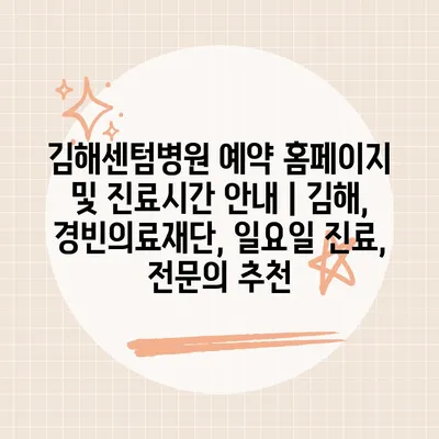 ✅ 김해센텀병원의 진료시간과 예약 방법을 알아보세요.