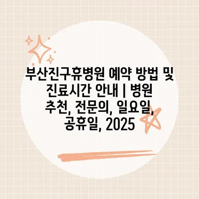 ✅ 부산진구휴병원의 진료시간과 예약 방법을 상세히 알아보세요.