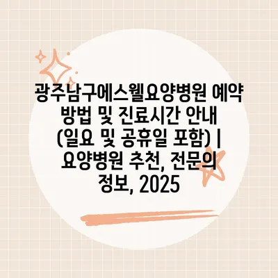 광주남구에스웰요양병원 예약 방법 및 진료시간 안내 (일요 및 공휴일 포함) | 요양병원 추천, 전문의 정보, 2025